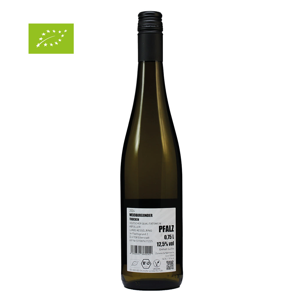 Der 2024er Kesselring Weißburgunder zeigt sich mit einem wunderbar klaren und frischen Aromenspiel. In der Nase verbinden sich grüner Apfel, Zitrone und eine feine Würze von Wiesenkräutern – abgerundet durch einen dezenten Hauch frischem Ingwer, der dem Duft eine exotische Nuance verleiht. Am Gaumen überzeugt der Wein mit klarer Struktur, feiner Perlage und einer lebendigen, animierenden Säure. Das leicht samtige Mundgefühl sorgt für Volumen und eine angenehme Balance.