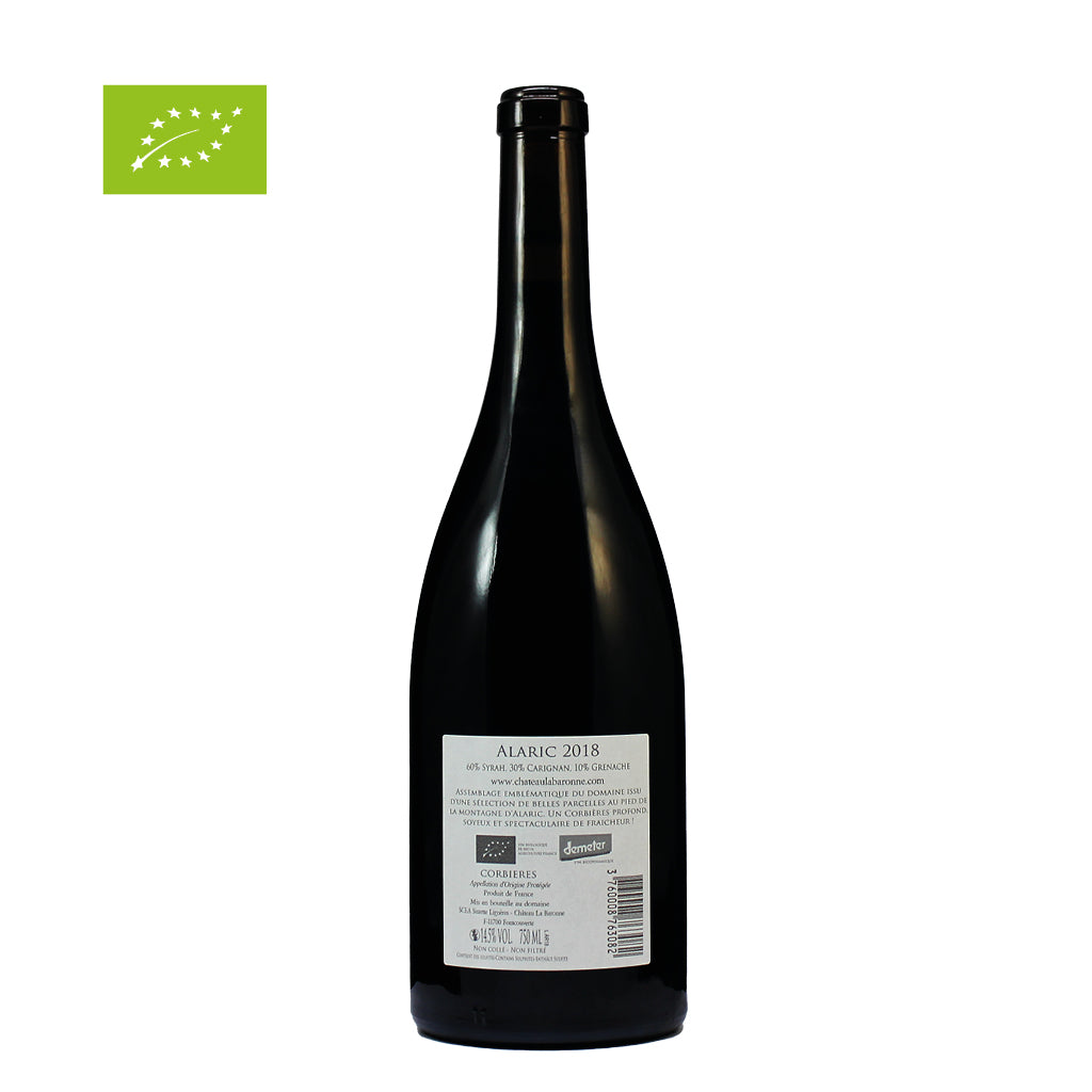 Der Alaric ist ein kraftvoller und komplexer Rotwein aus der Region Corbières im südlichen Frankreich. Dieser biologisch angebaute Wein wird hauptsächlich aus den Rebsorten Syrah, Grenache und Carignan hergestellt, die auf den kalkhaltigen Böden des Mont Alaric wachsen.